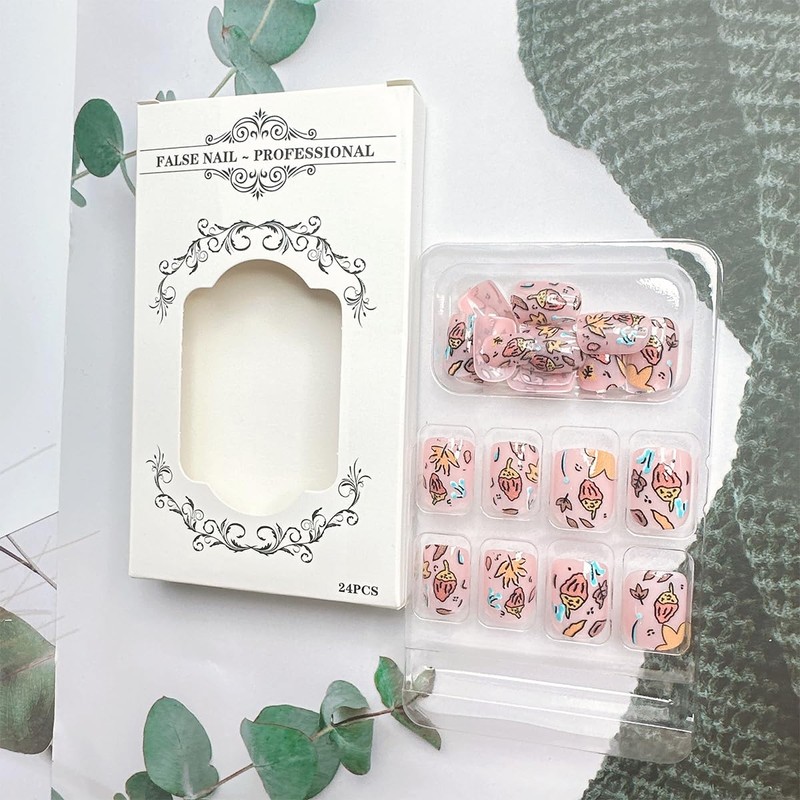 - Package Contains: You will get 24pcs autumn press on nails with maple leaf designs, 1pc nail file, 24pcs nail jelly stickers and 1pc wooden stick for removing false nails tips. No need to buy other things, you can get the nail salon-like effect.
