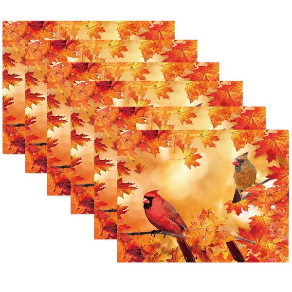 Fall Placemats 12 x 18 Inch Cardinal Maple Leaf Autumn Harvest Holiday Table Dining Placemats Home Kitchen Decor Set of 6