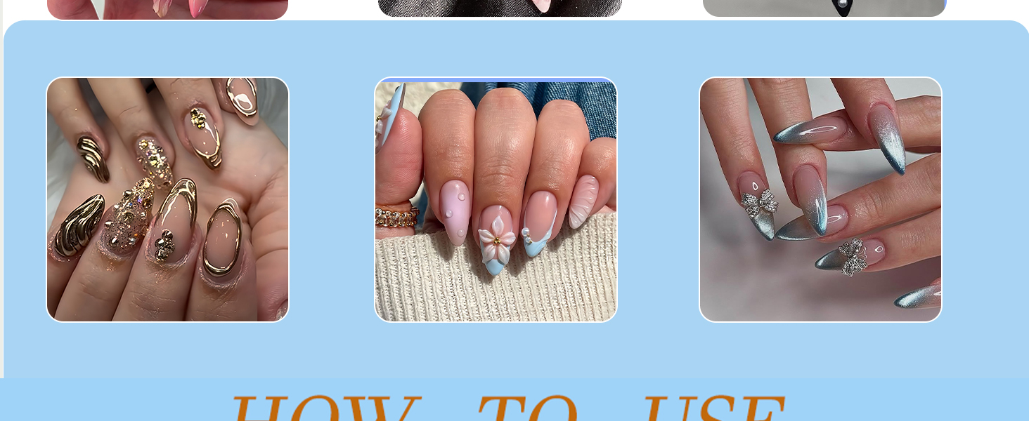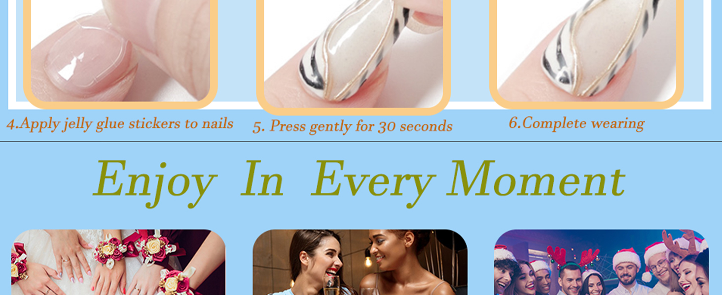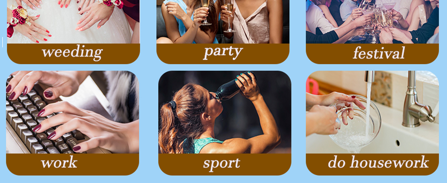 - MULTIPLE USES:False nails are suitable for various social occasions. Mainly used for parties, dances, dates,weddings,Halloween,Christmas, Valentine's Day etc. You can always change the style of your artificial nails to suit different occasions