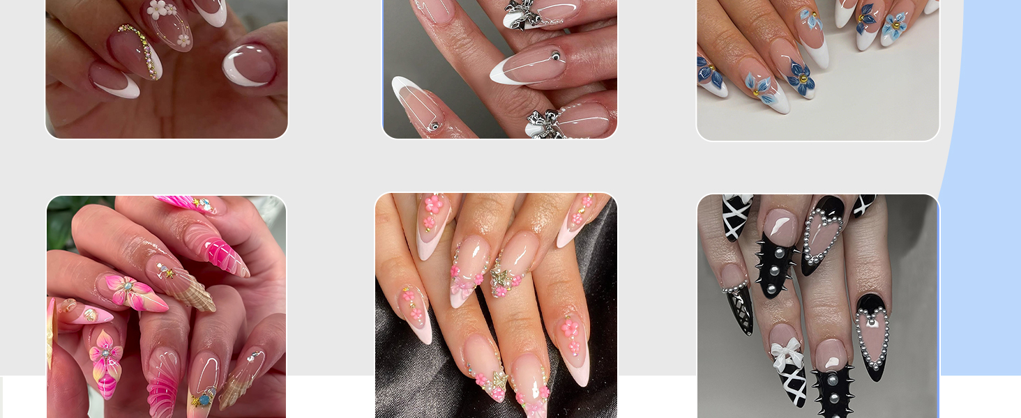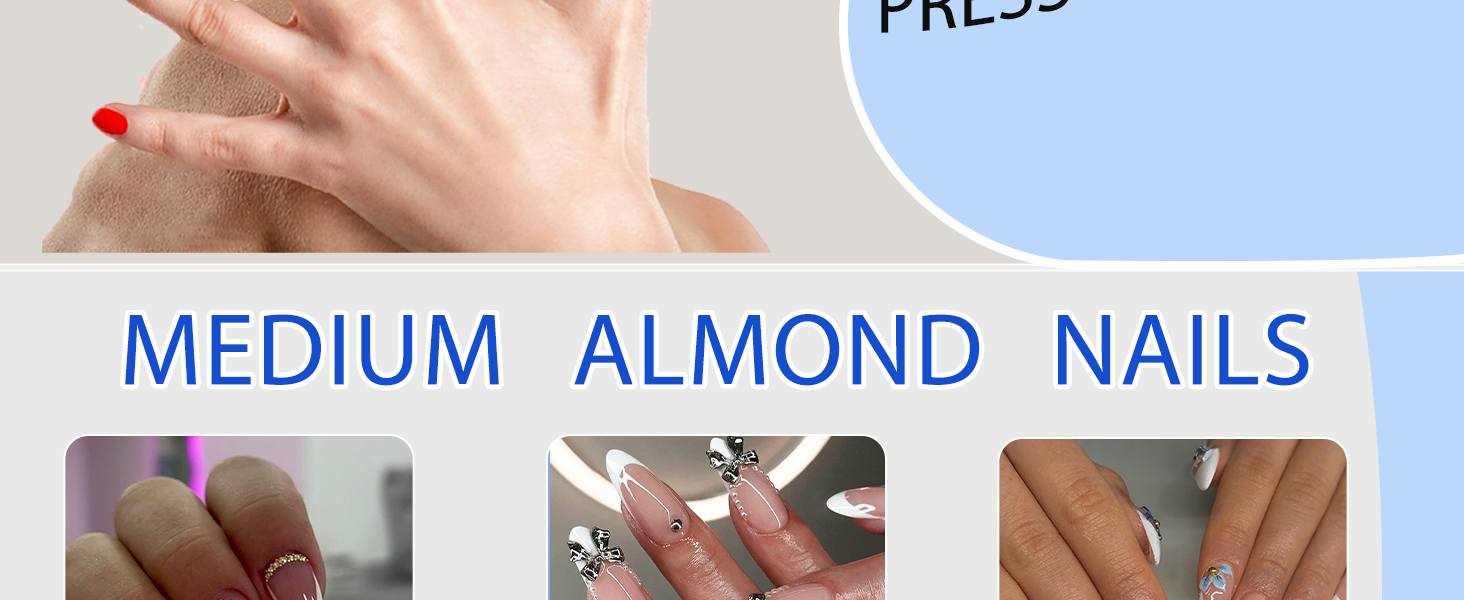 - Easy to Use:Clean your almond nails, then choose a suitable size of fake nails with designs, stick the jelly glue on nails, and press on your acrylic nails for 30 seconds