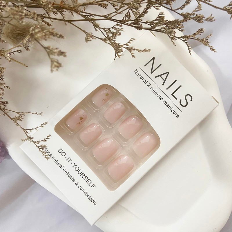 - đ ăMinimalist installationăShort fake nails with design, just choose the nail piece that suits you, polish the nail bed, paste the jelly glue we give you, and press the fashionable nails for 30 seconds to get the natural manicure that girls like. Due to limited availability of jelly glue, we recommend that you use your own glue.