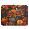 - [Fall Kitchen Accessories]: The surface of the microfiber dish drying mats for kitchen counter is printed with elements of orange white pumpkin and maple leaves. Unique printing design can create a joyful autumn and Thanksgiving atmosphere for kitchen countertops and home furniture; kitchen sink drying mat will bring surprises to your family and friends, and it is also the perfect holiday gift for them.