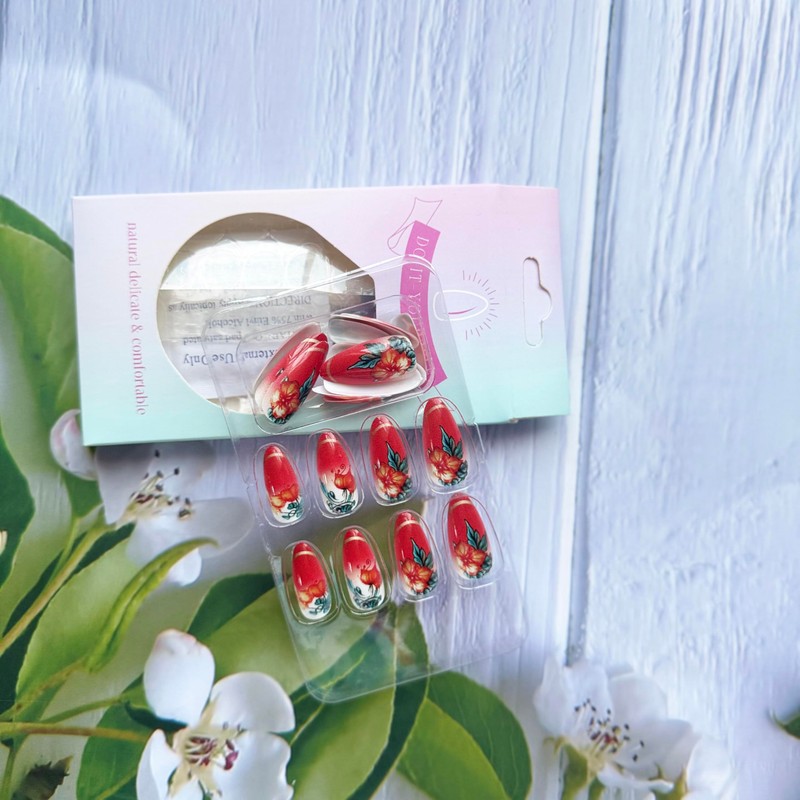 - Package Nails:You'll get 24 false nails in 12 sizes. 1 mini nail file, 1 small wooden stick. You can safely choose a fake nail that fits your finger size and DIY your desired nail shape