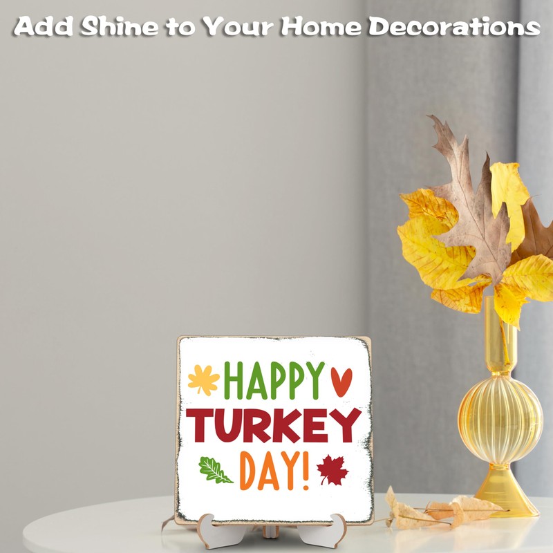 Fall Table Decor, Happy Turkey Day Wooden Plaque with Stand, Rustic Autumn Decorative Wood Sign for Thanksgiving Decoration Home Office Shelf Table Party Supplies - D12