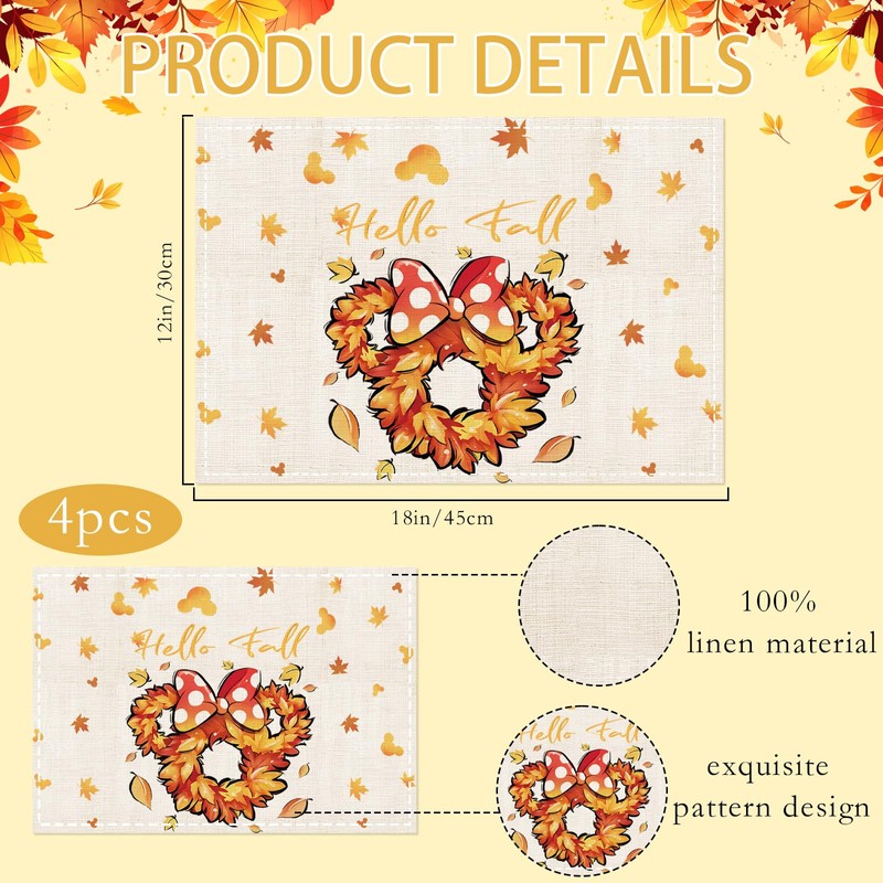 - High Quality: Our fall placemats set of 4 are crafted from premium quality linen fabric, ensuring durability and resistance to wrinkles. These fall decorations farmhouse placemats are built to withstand frequent use and washing, making them perfect for everyday dining. They effectively protect your table surface from hot pans, scratches, and spills, ensuring your table stays in pristine condition.