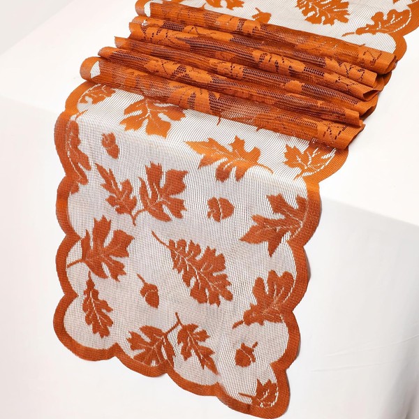 Fall Table Runner Decor with Maple Leaves, 1 Pack Thanksgiving Harvest Lace Dinner Table Decorations for Thanksgiving Party and Daily Table,Dessert Table,Outdoor Patio Table,13 X 72 Inch