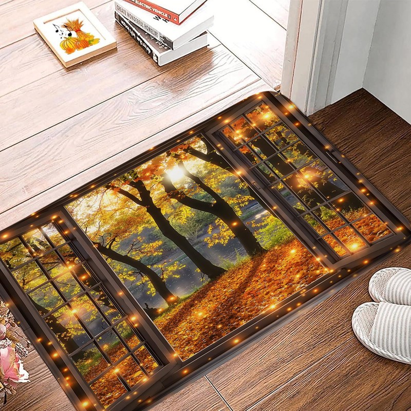 Fall Window Bath Mat Autumn Maple Leaves Forest Bathroom Mat Rug Memory Foam ...