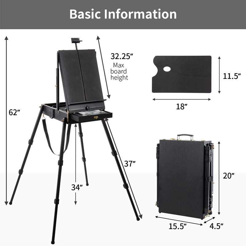 - Updated Classic French Easel: We updated Falling in Art sketch box easel with 4 strong aluminum legs, increasing the stability a lot compared with other traditional easels. The classic and unique black design carries hours of artistic enjoyment.