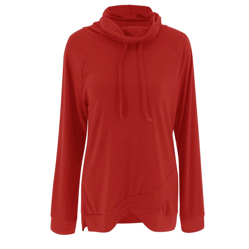 Fallorchid Womens Cowl Neck Tunic Tops Long Sleeve Pullovers Casual Drawstring Sweatshirts Red