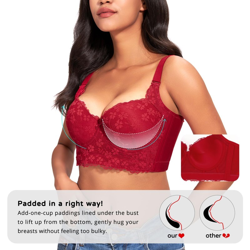 FallSweet Push Up Bras for Women Corset Top Bustier Padded Underwire Bra Add One Cup,Red-lace,40DD
