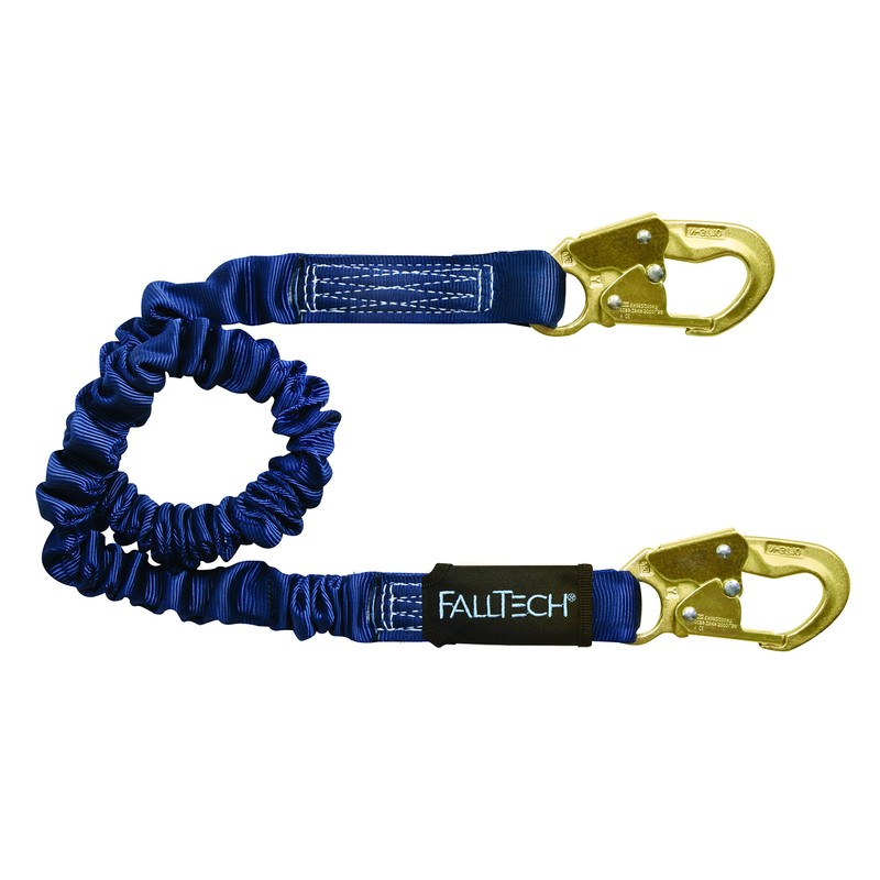 - Heavy duty tubular polyester outer jacket web resists abrasion and UV^Internal high modulus elastic won't soften from frequent use^Forged steel connectors with 3,600 lbs. gate strength^Full-length internal energy absorber limits fall forces to 900 lbs. or less
