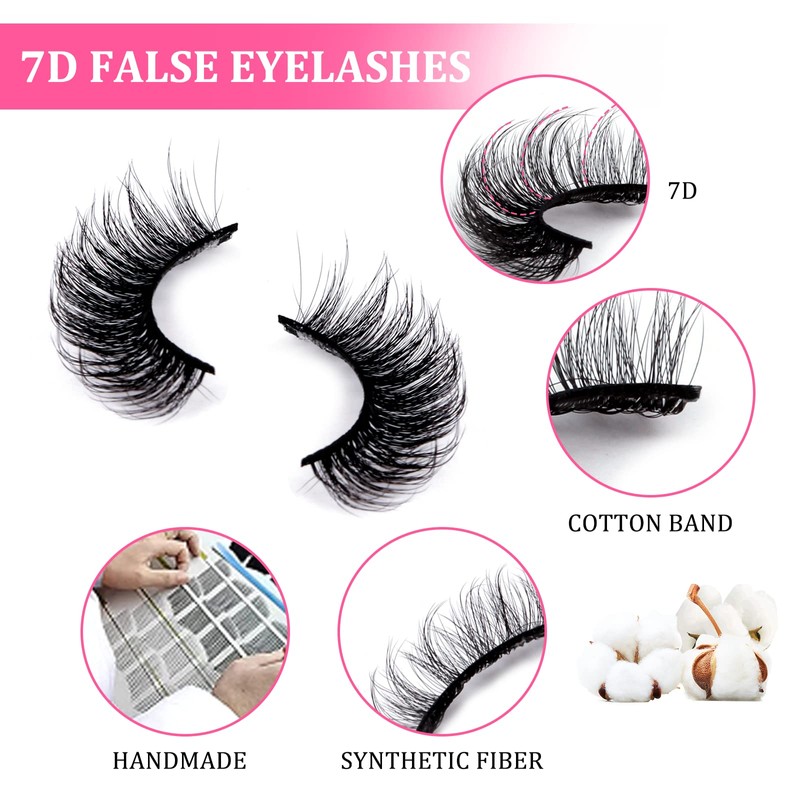 • False 7D eyelashes: the unique 7D multi-angle crossover design makes your eyelashes look lifelike, long, fluffy and dramatic from any angle! The eyelashes are ultra-thin and blend seamlessly into the natural eyelashes.