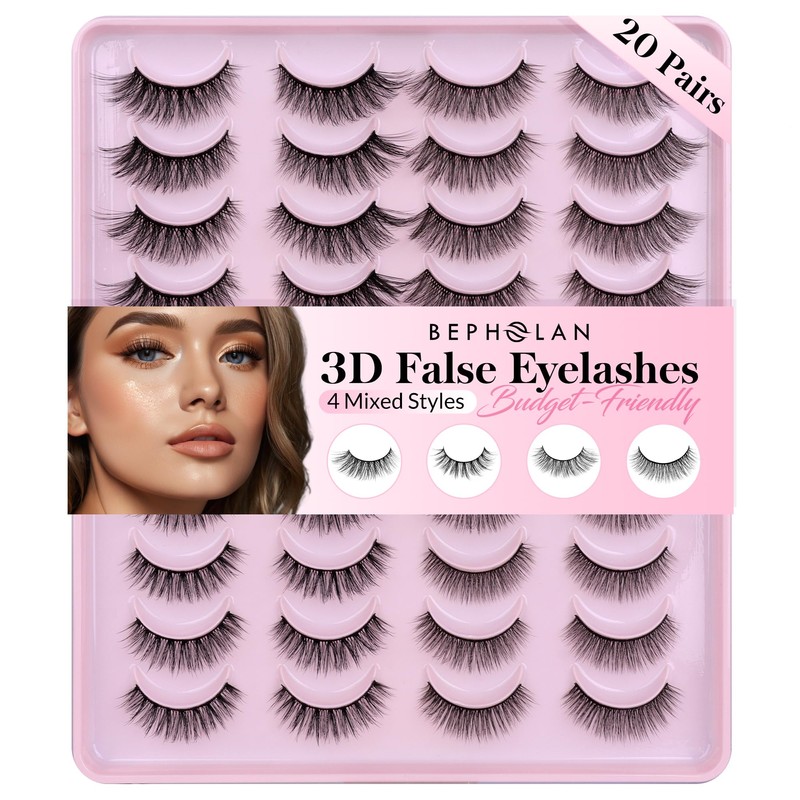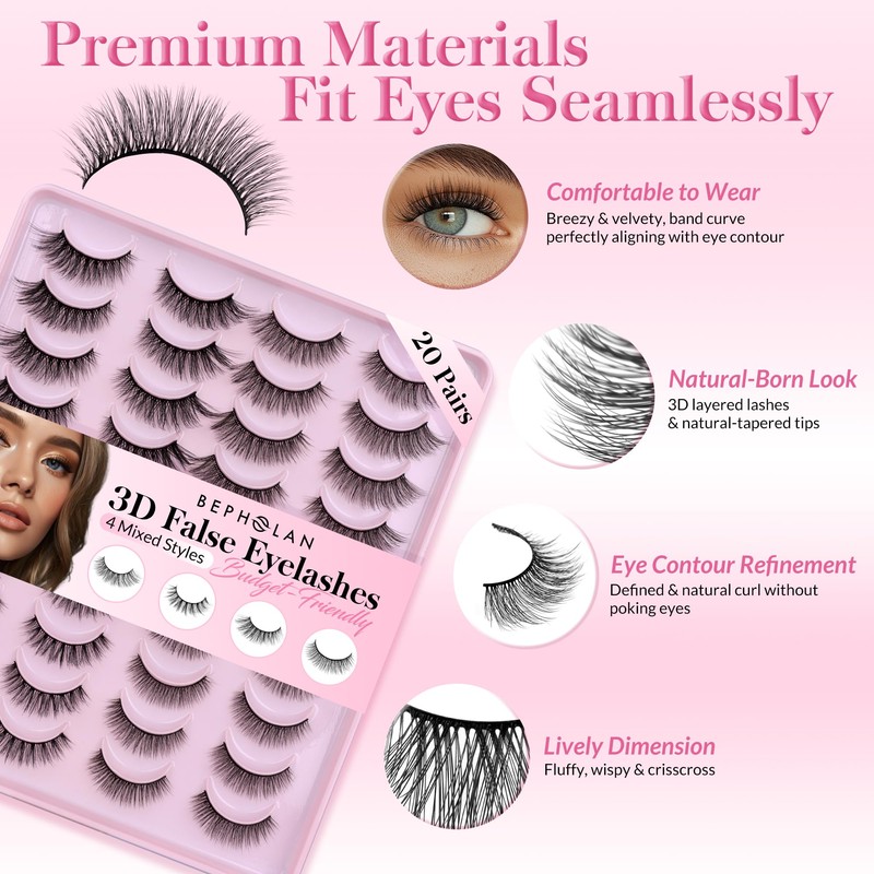 False Eyelashes 20 Pairs 3D Fake Lashs Natural Look Soft C Pack Thick Wispy Fluffy Lashes Strip by Bepholan(C01)