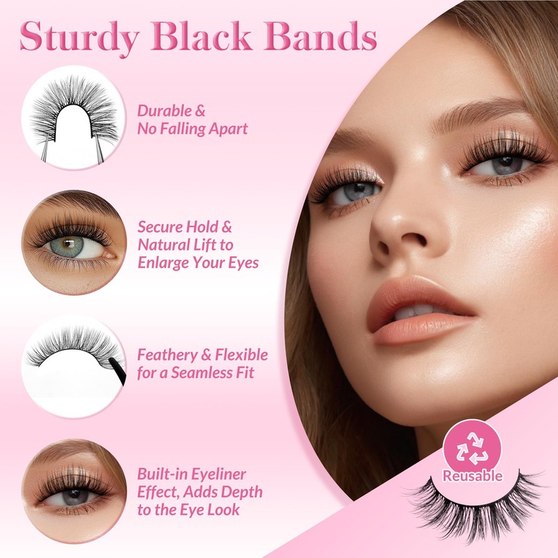 - 【Enlarge Your Eyes with Sturdy Black Bands】The durable black bands enhance your natural lashes, creating a dense yet natural look. They also offer extra stability, keeping lashes firmly in place while accentuating your eye shape