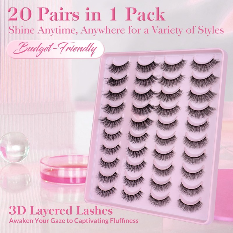 - 【Different Styles in 1 Pack】Featuring doll-eye and cat-eye shapes, the fluffy 20-pair false eyelashes meet your diverse needs. Ideal for various occasions, they are a budget-friendly choice for multi beauty options