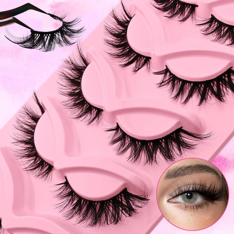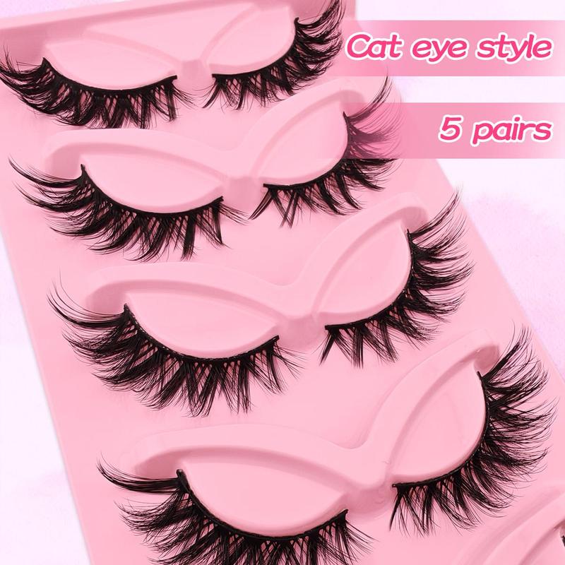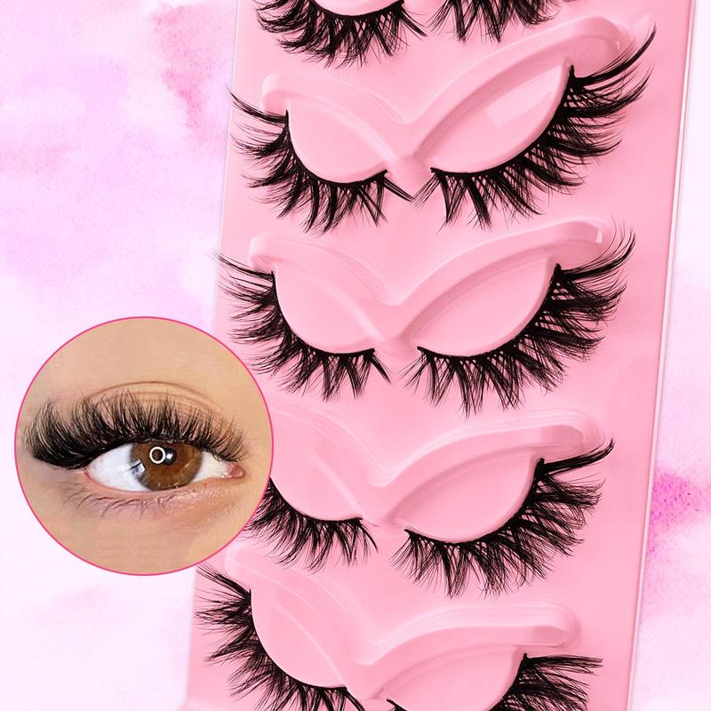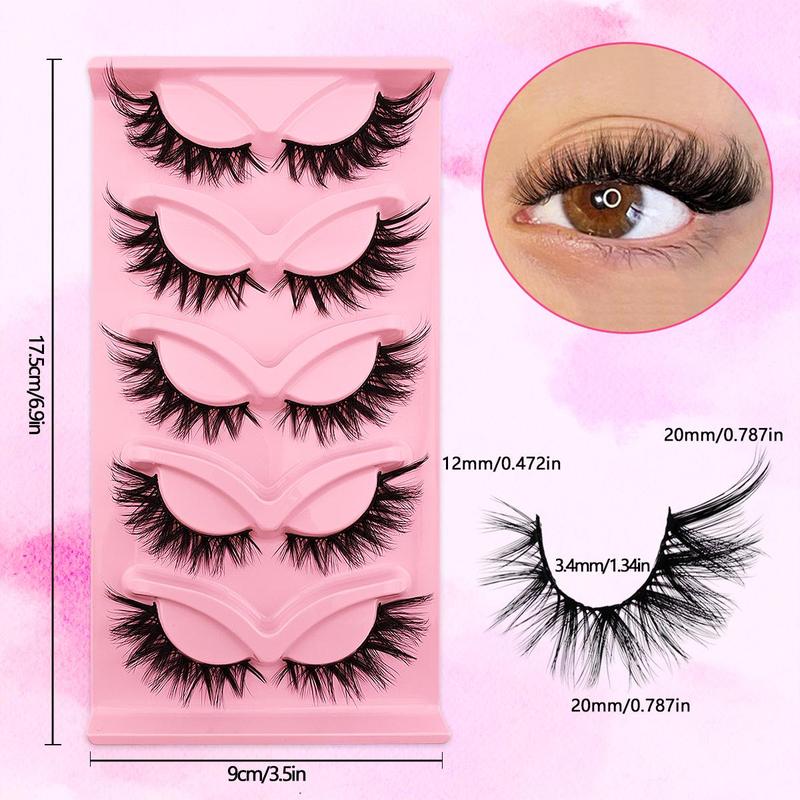 False Eyelashes, 5 Pairs Wispy Faux Cluster Lashes, Natural Curling Eye Makeup Strip Lashes, Volumized False Eyelashes for Eye Makeup Enhancement