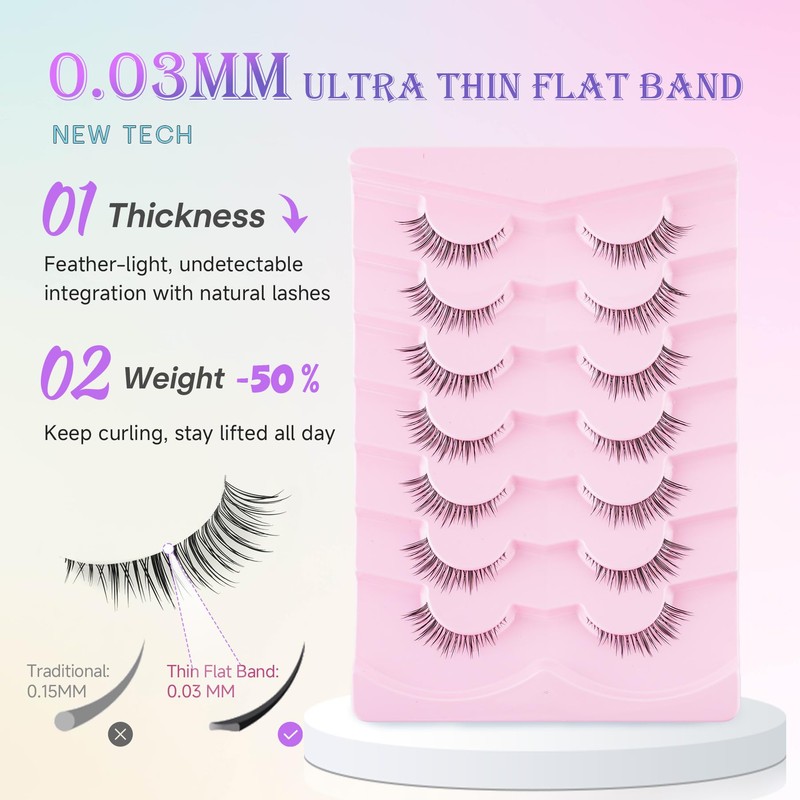 - ULTRA-THIN & WEIGHTLESS LASHES: New flake lashes design. With 0.03mm ultra-thin flat band,our fake eyelashes are 50% lighter than traditional lashes, offering a featherlight feel with less burden on the eyes