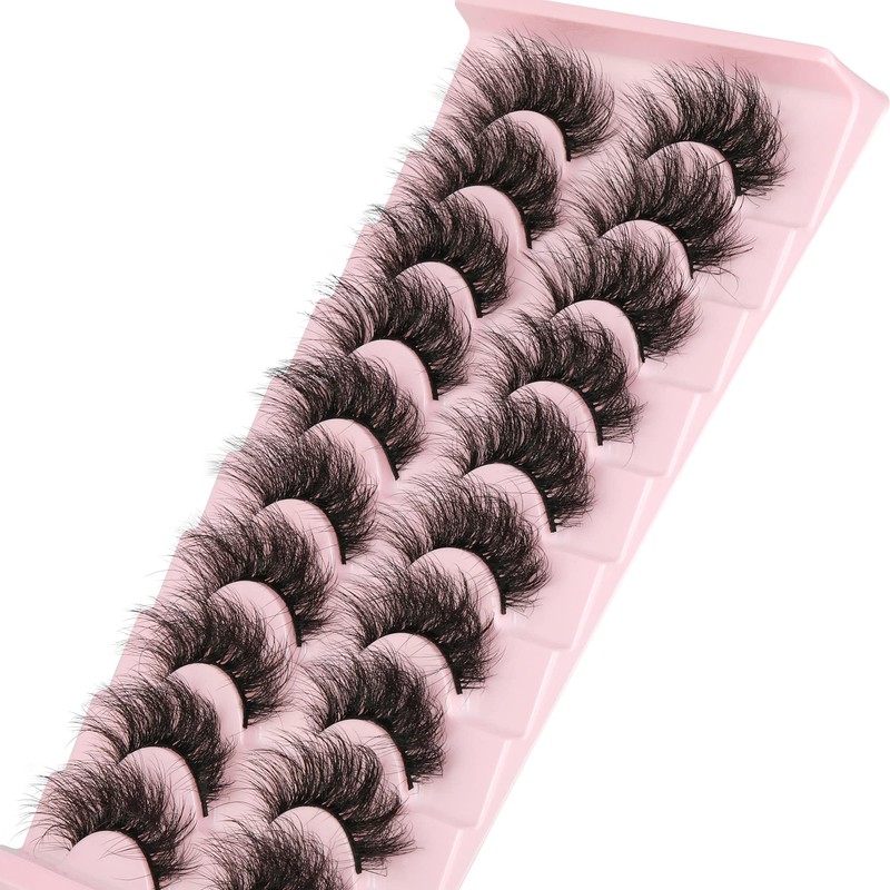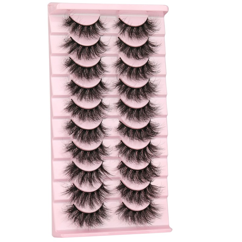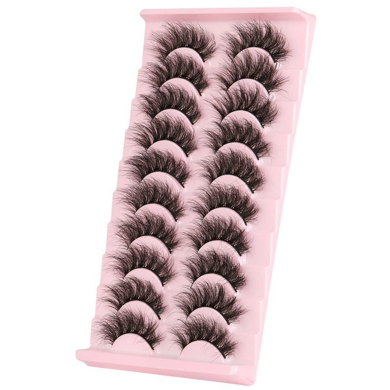 False Eyelashes Dramatic Faux Mink Lashes Wispy Fluffy 19MM Curly FANXITON 3D Fake Eyelashes 10 Pairs Pack