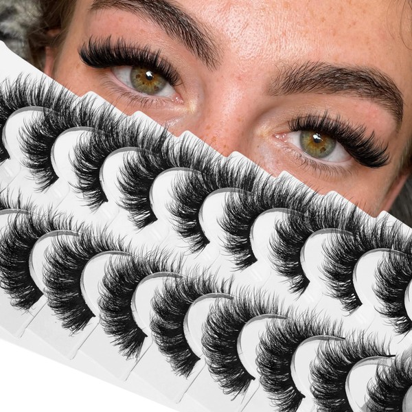 False Eyelashes Fluffy Cat-Eye Look Wispy Lashes 3D Volume Natural Look Lashes D Curl Russian Strip Lashes 10 Pairs Pack Faux Mink Lashes