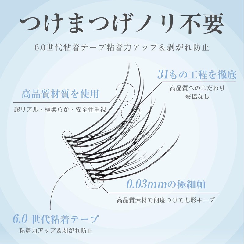 • Glue Free Eyelashes - Curly False Eyelashes- No need to glue and easy to apply: Using the latest self-adhesive technology, it can be applied directly to the root of the eyelashes without the use of adhesive. Easy to install in seconds, no hassle. The transparent shaft fits securely around your eyes, making it perfect for everyday use. Handmade by craftsmen for a natural three-dimensional feel. Specially designed to fit the eye of Japanese people. Low profile and holds strong lashes all day long. Daily commute, school, travel, going out