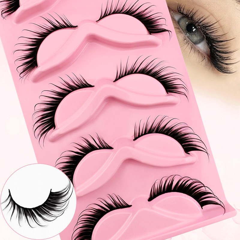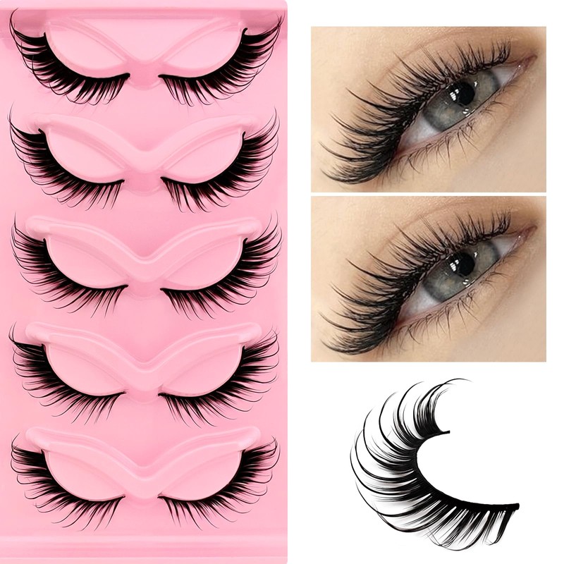 False Eyelashes, Wispy Cat-Eye Eyelashes, Wet Look, Curly, Fox Eye, Artificial Eyelashes, 18 mm Long, Dramatic Angel Wings Eyelash Lift, False Eyelashes, 5 Pairs Pack (Wet-06)