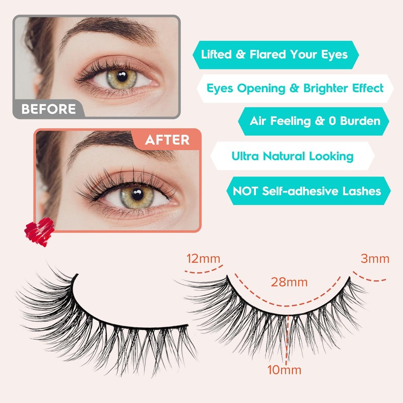 - FALSE EYELASHES NATURAL LOOK: The wispy eyelashes use ultra thin cotton black band, seamlessly blend to your real eye lashes for a natural make up look, suit for DAY-TO-DAY use