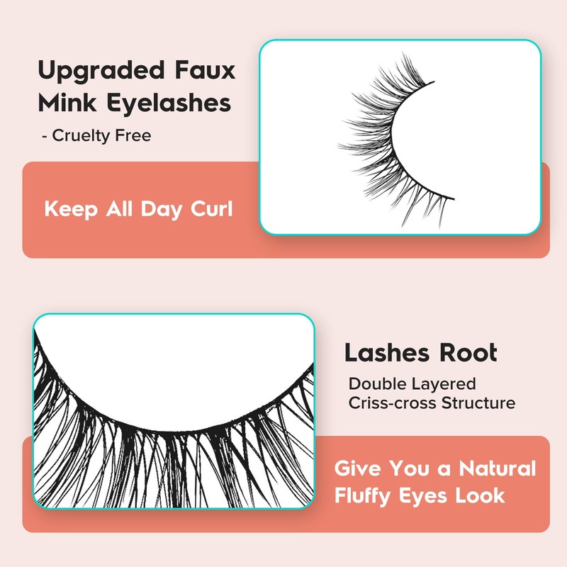 - VEGAN & REUSABLE: The fake eyelashes use ultra-light faux mink fibers, cruelty-free, skin friendly. Bring pretty lashes extension look without damaging your own lashes. The fake lashes can be reusable for about 15 times if the eyelashes are used correctly