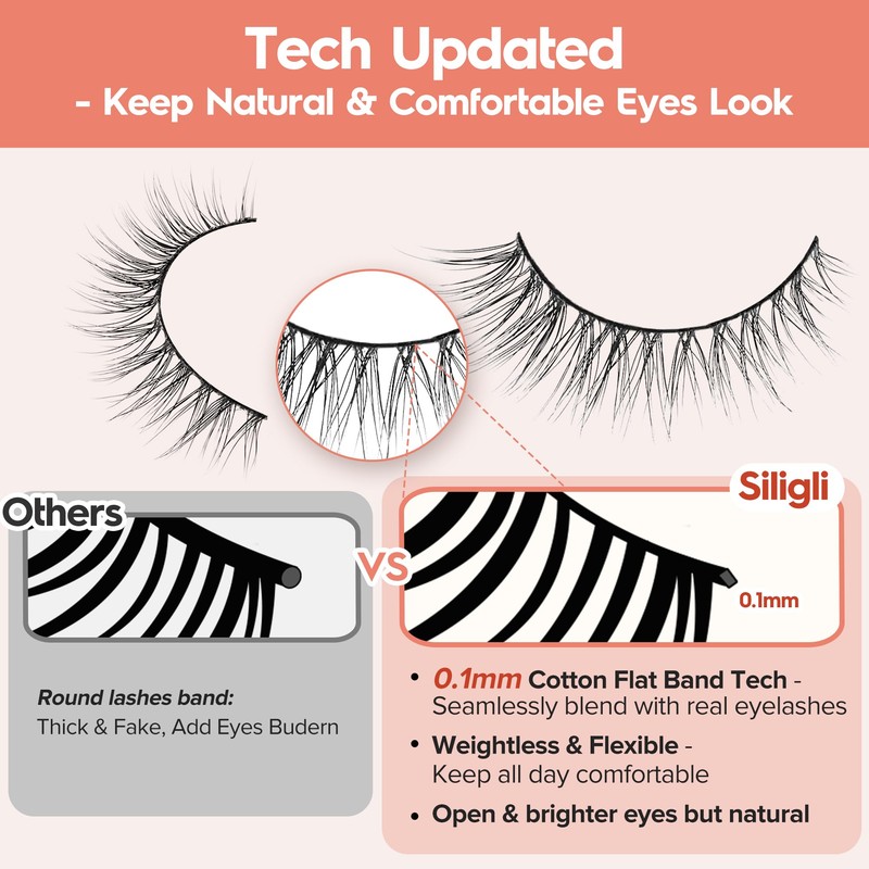 - NATURAL MINK LASHES: Siligli lashes use superfine fibers - incredibly flexible, easy to bend well and stay on, beginner friendly. The lashes is lightweight and soft, no burden on your eyes and keeping you all-day comfortable