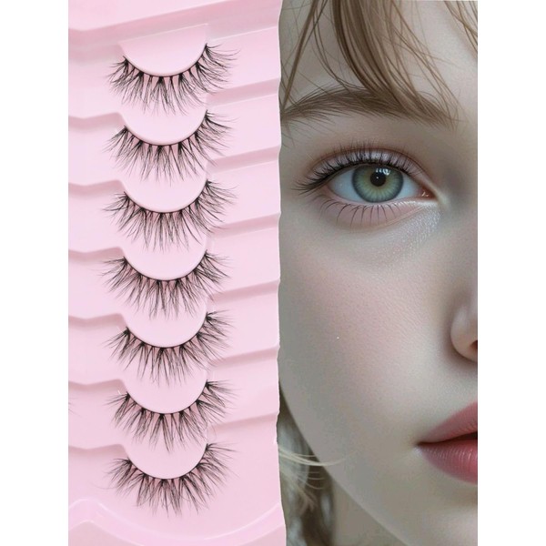 False Lashes Natural Wispy Eyelashes 11mm Short Lashes 3D Volume Fake Eyelashes Thin Cotton Band C Curl Soft Strip Eye Lashes Pack 7 Pairs Siligli