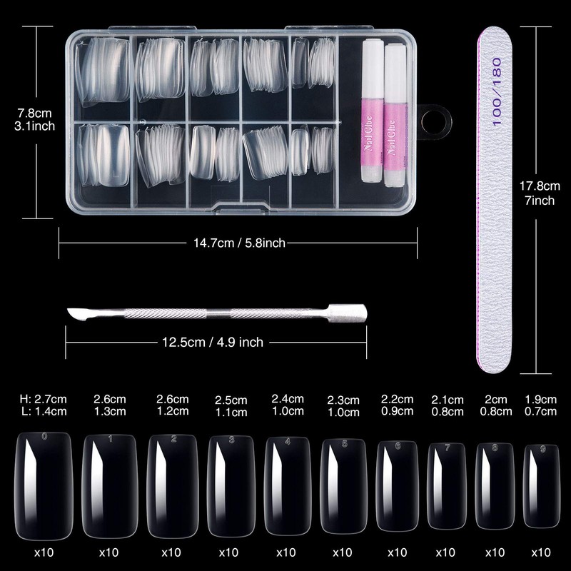 • 10 Sizes: 100 pieces false nails with 10 different nail sizes fit most fingernails. The nails are divided into 10 apartments, making them easier to classify and use.