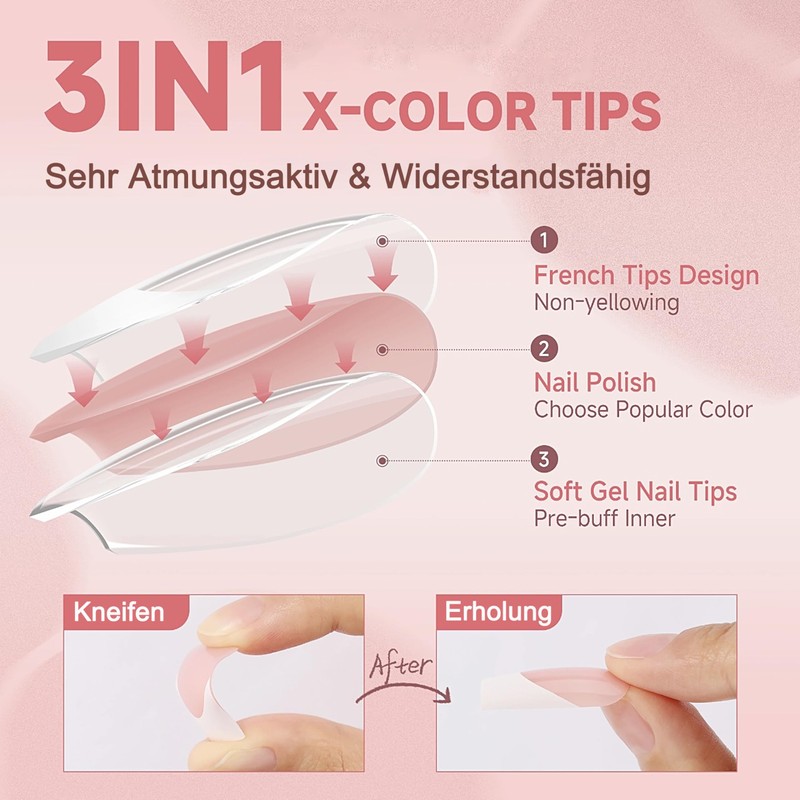 Give your nails an elegant, classic look with our 360-piece French nail set. These false nails with white tips offer a perfect combination of style and durability. The kit contains nail care oil and everything you need for a professional manicure at home. Ideal for DIY nail art and quick applications - for a perfect French manicure look.
