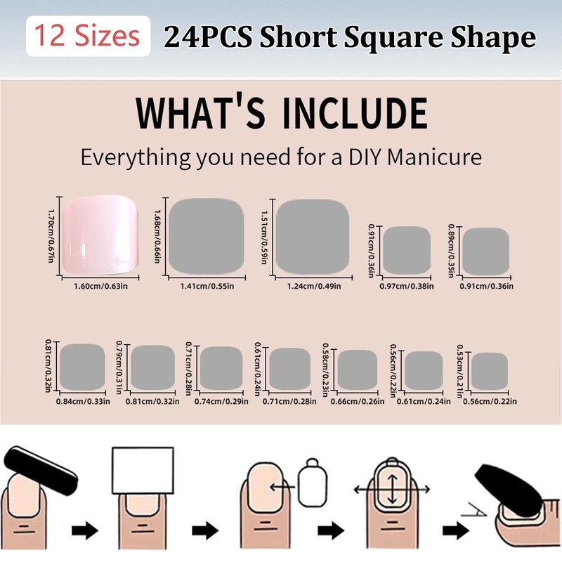 - 【12 Sizes Pink False Toenails】:The toe nail false includes 24pcs nude pink fake toe nails tips, 1 tube of nail glue, 1 sheet of jelly sticker. 12 sizes press on toenails to meet all your needs in nail art decoration that make your toenails more elegant and glamorous