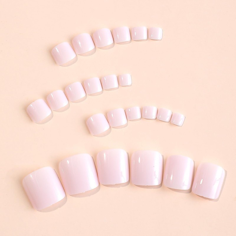 False Toe Nails with Glue - 24pcs Light Pink False Toenails - Short Square Stick on Toenails - Strong Fake Toe Nails - Press on Toenails for Women Big Toe Small Toe French Manicure