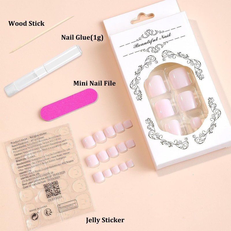 - 【Long Lasting for 15+ Days】:False toe nails with glue is very sturdy, waterproof and not easy to peel off, allowing french false nails to last 1-3 weeks, and 3-5 days with jelly stickers