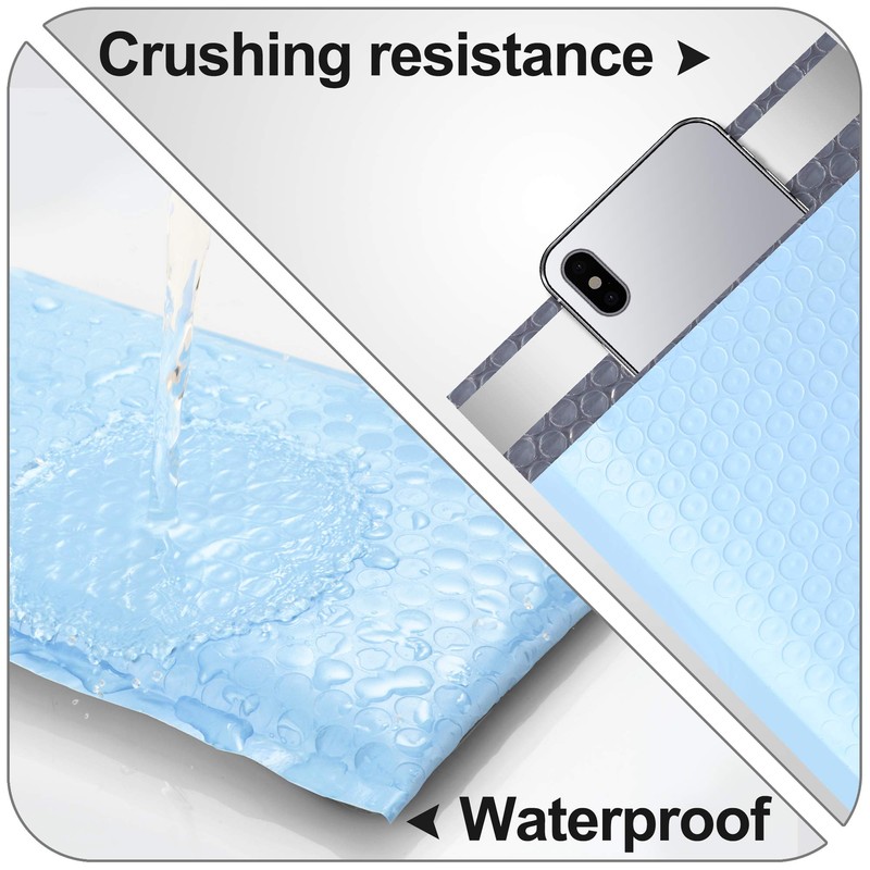 - 【Tear-proof and waterproof bubble mailers】The mailing envelopes are tear-proof, and provide a buffer, avoiding your packages being crushed. Even the sealing area of bubble mailers is covered with bubbles, providing comprehensive protection. The premium poly surface of bubble mailers prevent your products from becoming damp. Our padded mailers also have a puncture-proof design. Packaging with durable bubble mailers is a good way to reduce customer complaints and improve customer loyalty.