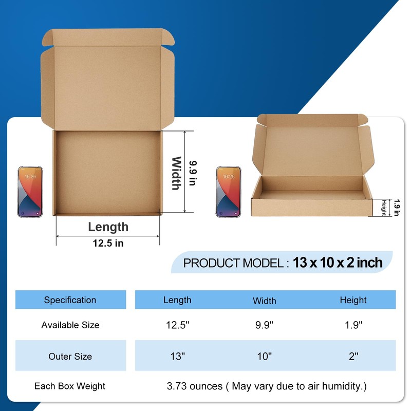 - High Quality Shipping Boxes: You will receive a pack of 30 cardboard mailing boxes, size 13x10x2 inch and inner size is 12.5x9.9x1.9 inch. Perfect packing boxes for small business and small items.