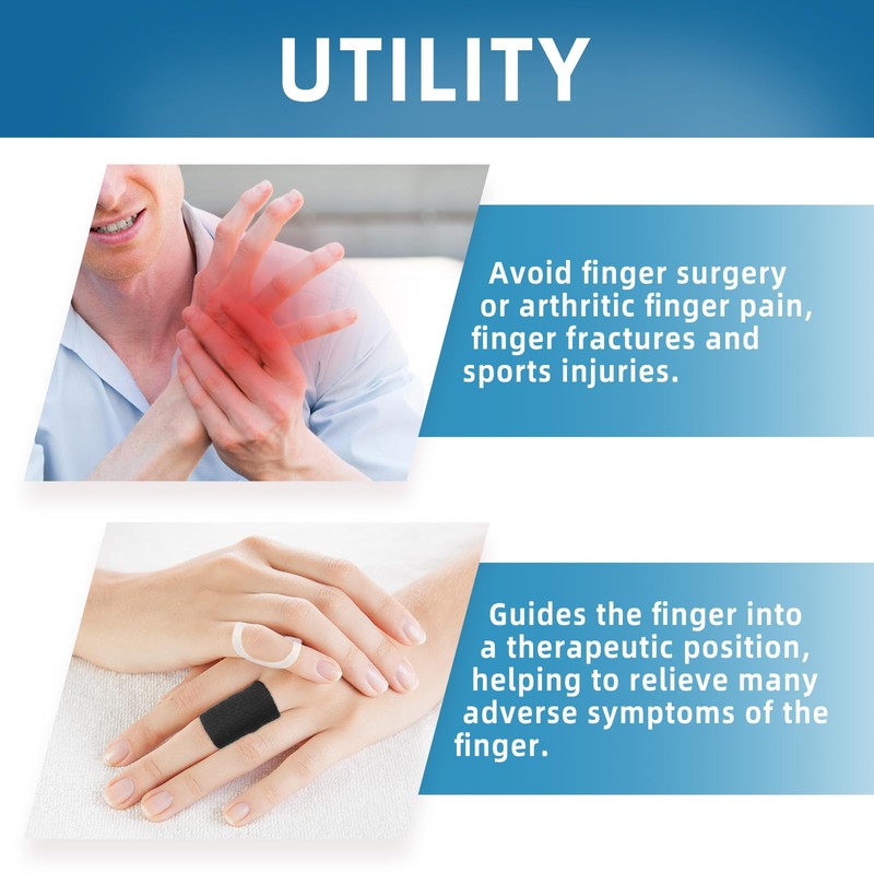 - FINGER PROTECTORS: The finger splint provides strong support for your finger, while the Finger Sleeve provides supplementary support. Together they can effectively solve a variety of finger problems - help recover from finger injuries, straighten bent fingers, provide support for hammer fingers, protect trigger fingers, etc.; and limit excessive finger movement. Suitable for joints with a circumference of 5.65-6.9cm.(Refer to the second picture in the listing or the A+ detail module for detailed sizing information.)