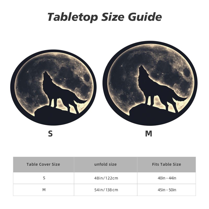 Famame Full Moon Howling Wolf Round Fitted Tablecloth with Elastic Protector Table Cloth Kitchen Dinner Waterproof Oil-Proof Table Covers Fits 40"-44", Small