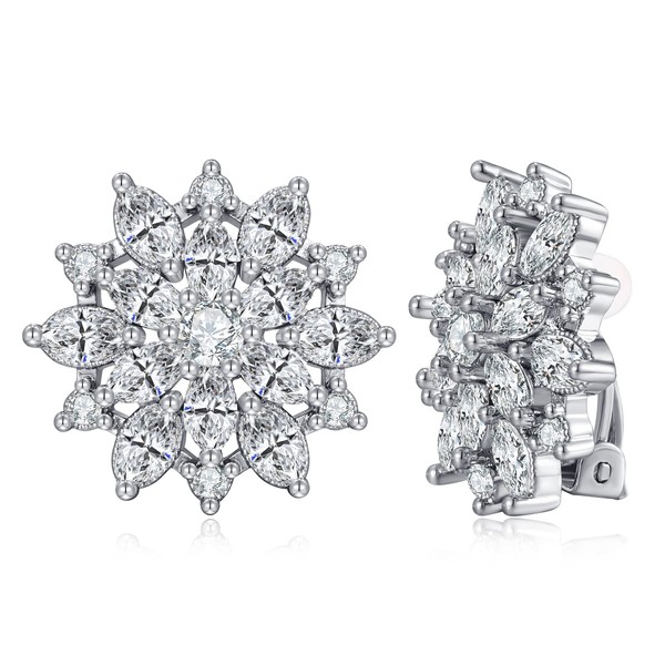 FAMARINE CZ Silver Clip on Earrings for Women Snowflake Diamond Clip Earrings Non-pierced Earrings Small Clip on Earrings