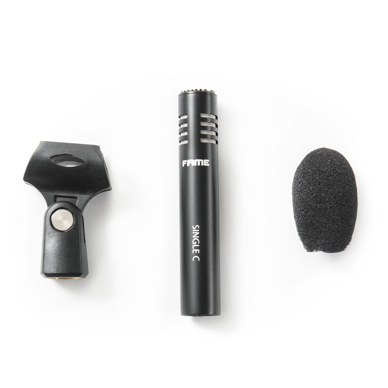 Fame Audio Small Diaphragm Condenser Microphone, Single C, Cardioid Characteristic, Frequency Range 30Hz-18kHz, Max SPL 135dB, Sensitivity 23.3mV/Pa, XLR 3-Pin Connection, Includes Holder, Black