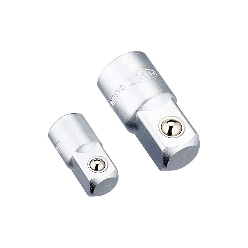 - 2-piece adapter set for socket wrenches: 6.3 mm (1/4 inch) drive to 10 mm (3/8 inch) and 10 mm drive (3/8 inch) to 12.5 mm (1/2 inch) square