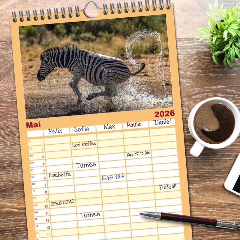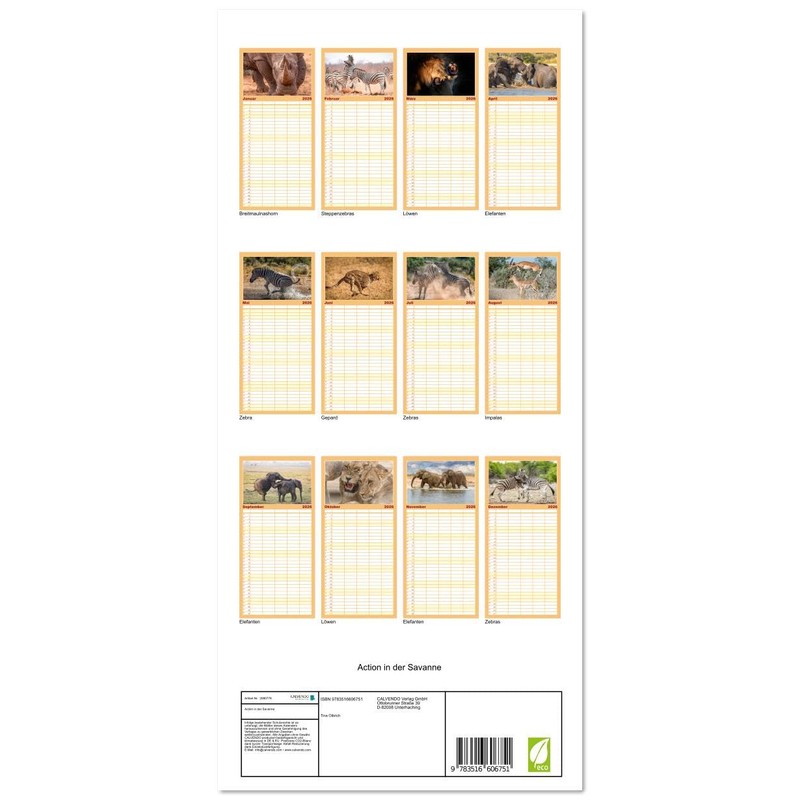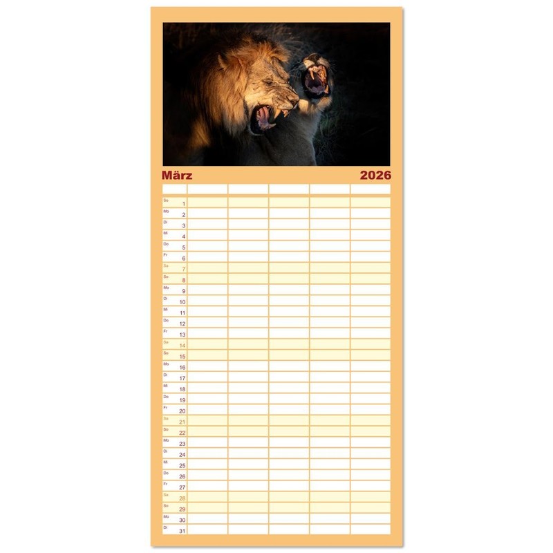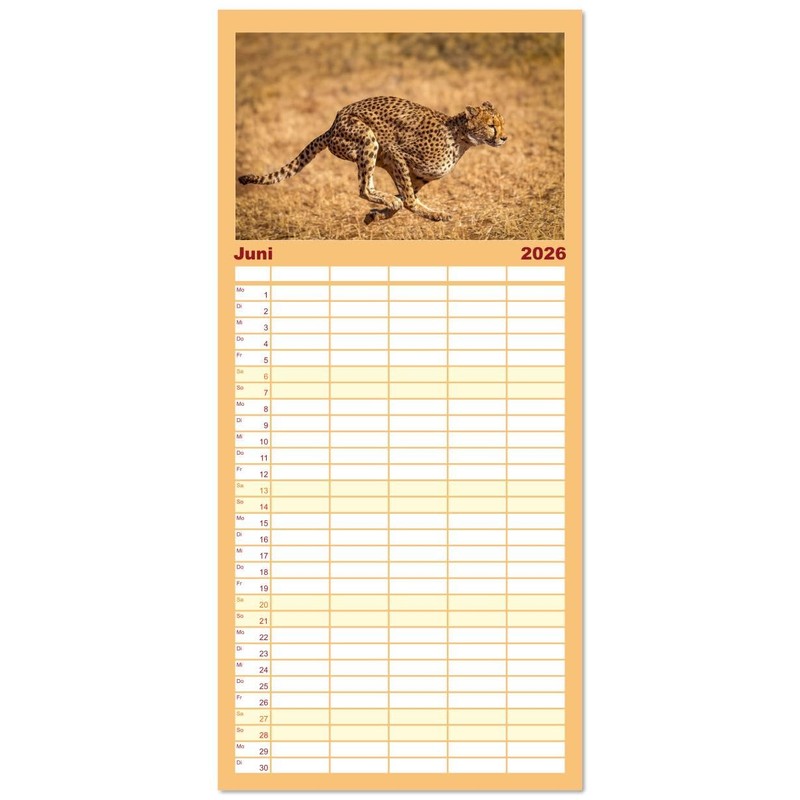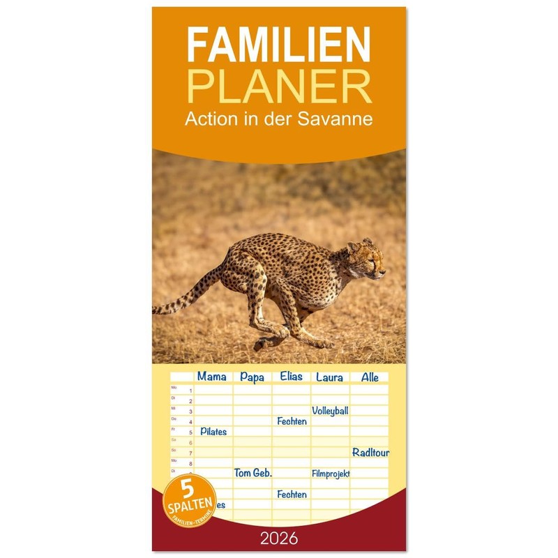Familienplaner 2026 - Action in der Savanne mit 5 Spalten (Wandkalender, 21 cm x 45 cm), CALVENDO: Afrikas Tiere in voller Aktion (CALVENDO Tiere)