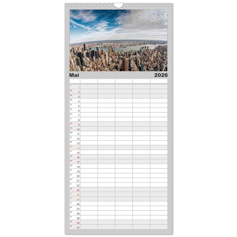 Familienplaner 2026 - New York Impressionen mit 5 Spalten (Wandkalender, 21 cm x 45 cm), CALVENDO: Eindrücke einer Stadt, die niemals schläft (CALVENDO Orte)