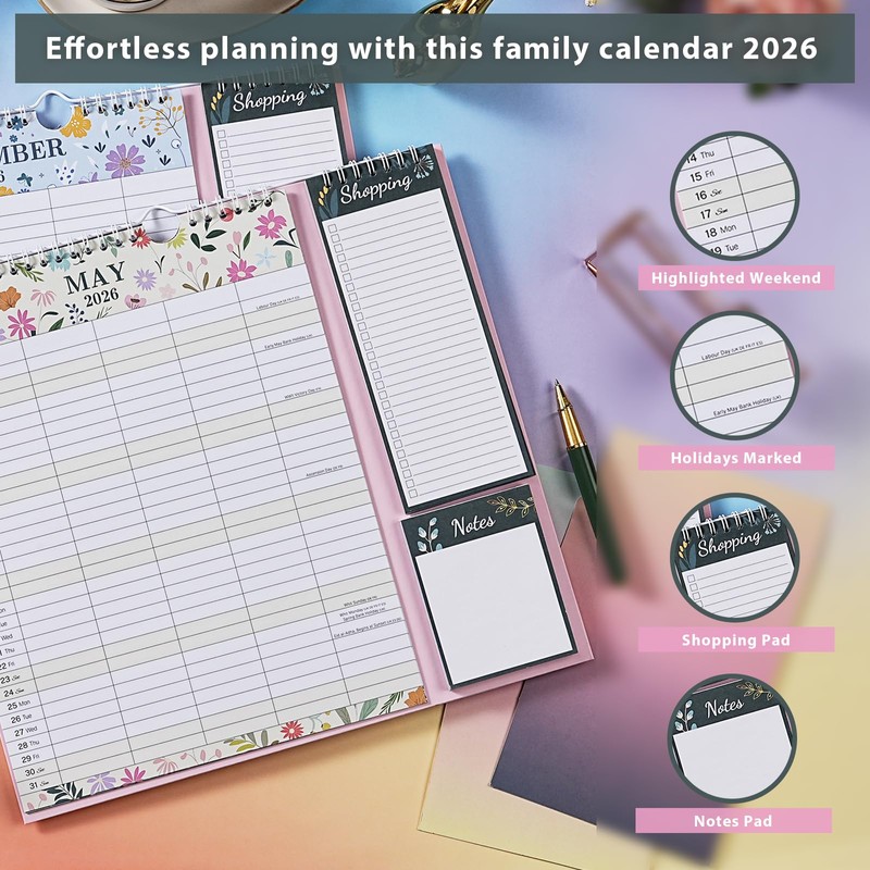 - Family Calendar 2026 - Family Planner for up to 5 people and the names of the family members can be easily entered each month at the top - so everyone stays in view.