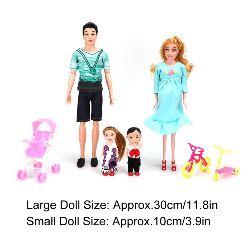 1、This fashion family dolls set is perfect to play on its own, or with dollhouses. 2、Great Christmas Gift and Birthday Gift for children, especially little girls. 3、Suitable for parents to do some parenting practice, encourage children imitative and imaginary play. 4、Helpful for children to develop a good habit of self-reliance, improve your child's education and creativity. 5、Family dolls using safe materials, dolls joints can be freely active, can construct a variety of family plots, so that children are full of imagination.