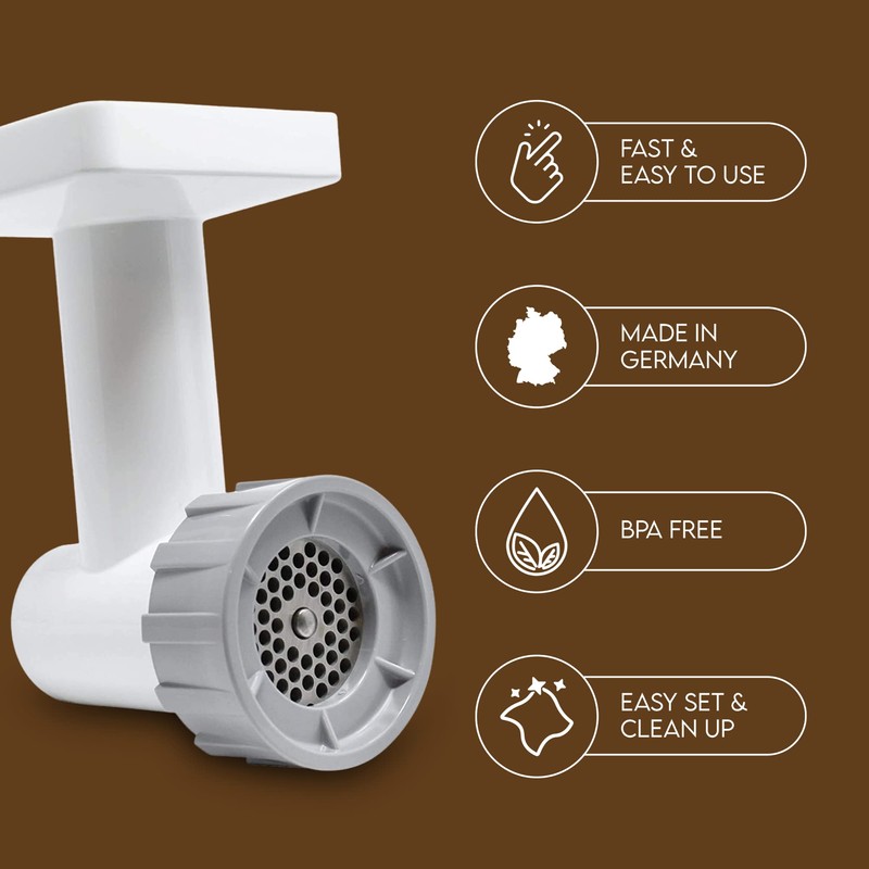 Family Grain Mill Meat Grinder Attachment - Grind Fresh Meat, Cheese, Fruits, and Veggies with Ease and Precision Meat Grinder, Made in Germany, BPA Free