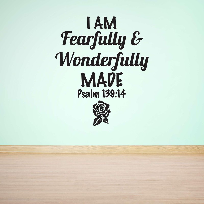 Family I Am Fearfully and Wonderfully Made Loving Quote Wall Decal Decoration Psalm 139:14 Beautiful Bible Verse Beautiful Rose Flower Lasts Years and Easily Removable - Size: 9 in(W) x 10 in(H)