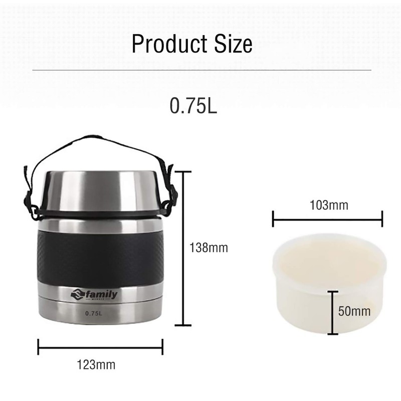 FAMILY Stainless Steel Food Flask, Insulated Container for Solids and Liquids with Inner Container for Soups, Sauces or Salads (Black, 0.75L)