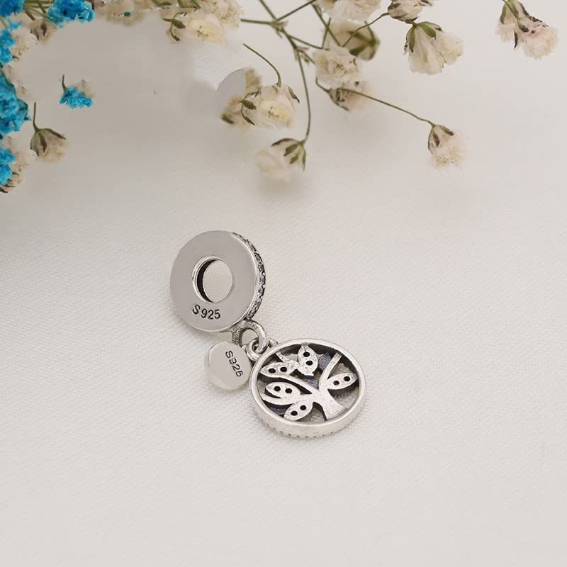 Family Tree Dangle Charm 925 Sterling Silver Pendant,Girl jewellery Beads Gifts for Women Bracelet Necklace