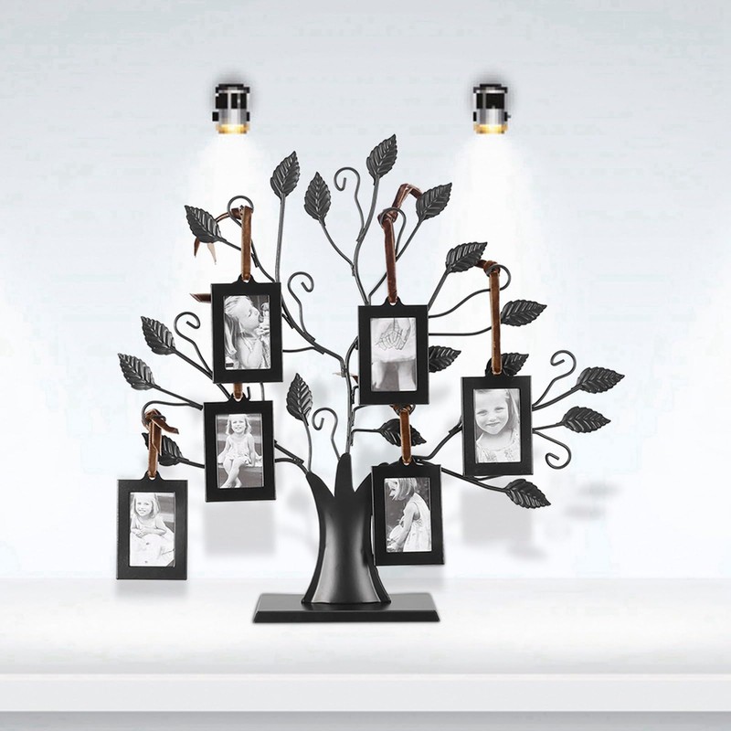 Family Tree Picture Frame, Family Photos Frame Display Tree with Hanging Pictures Frames, Graduation Photo Display Tree Picture Holder Stand Photo Frame (S With 6 photo frames of